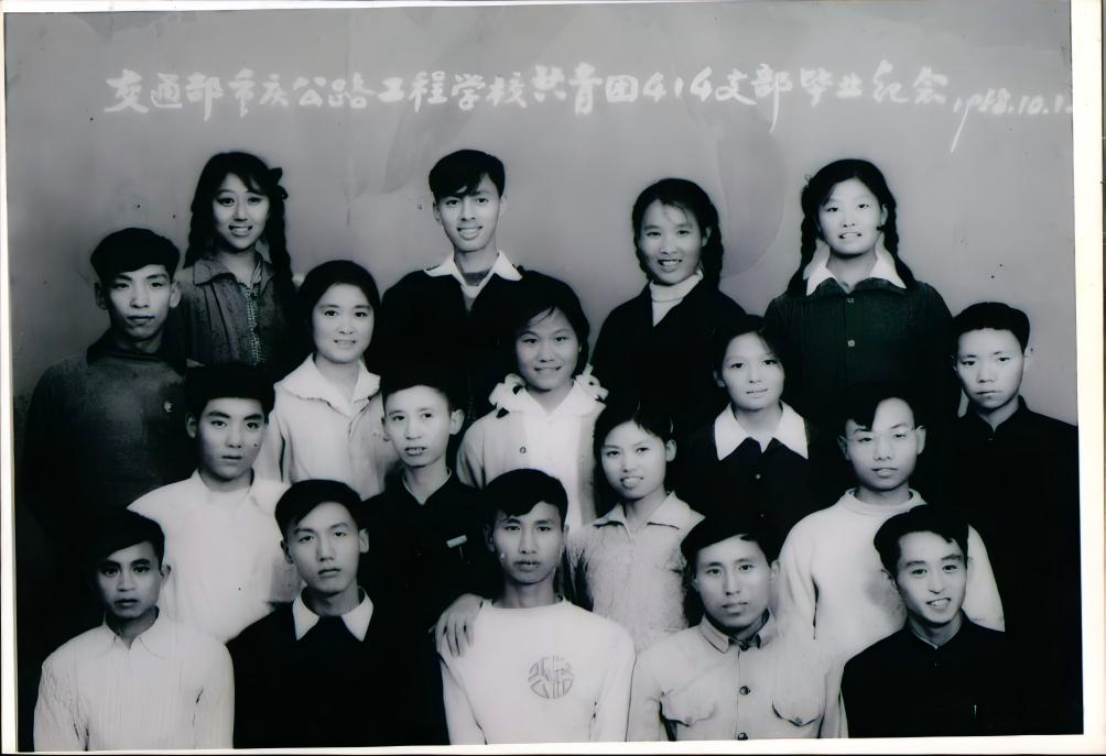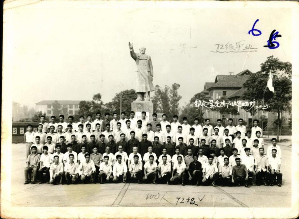 (档案馆馆藏重庆建工学院桥72级,后并入重庆交通学院毕业照,第二排右九为彭觉富)