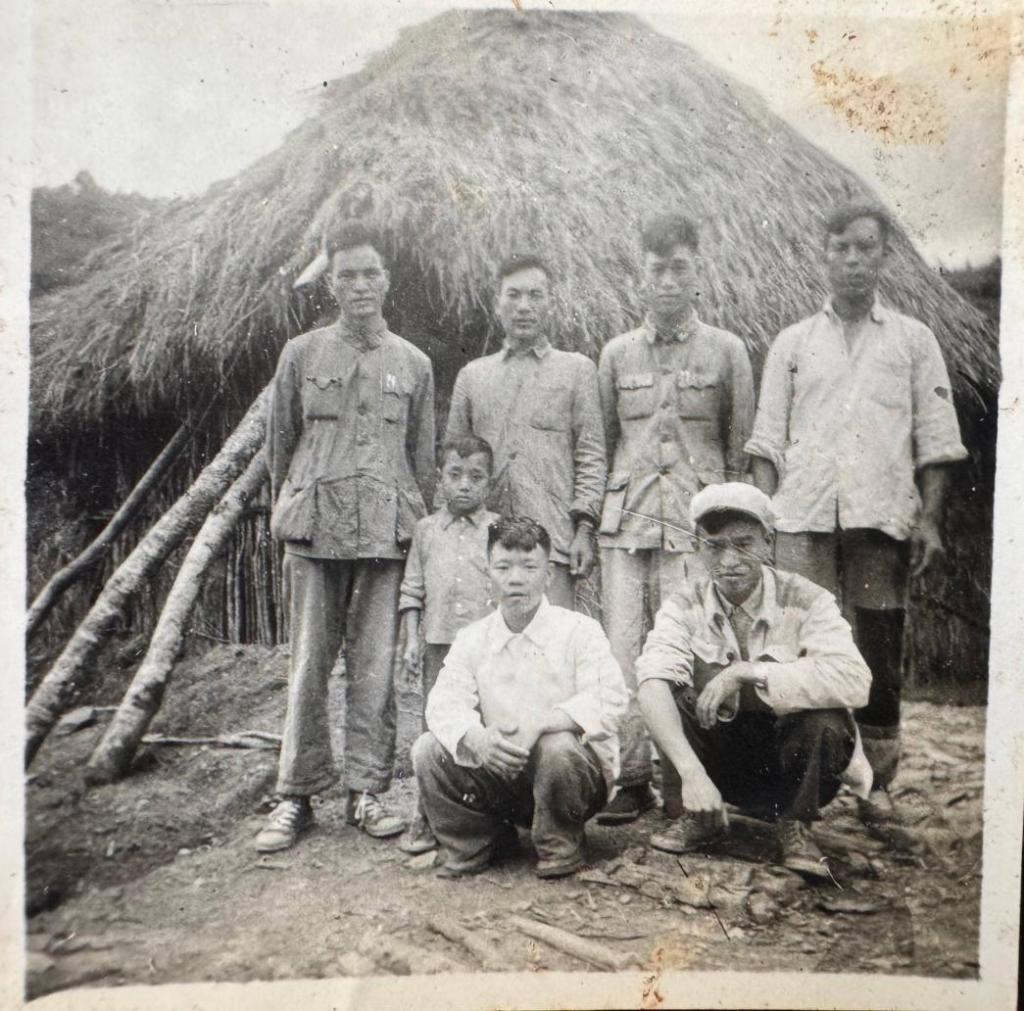 (档案馆馆藏1962年老挝筑路人员 前排左一为彭觉富)
