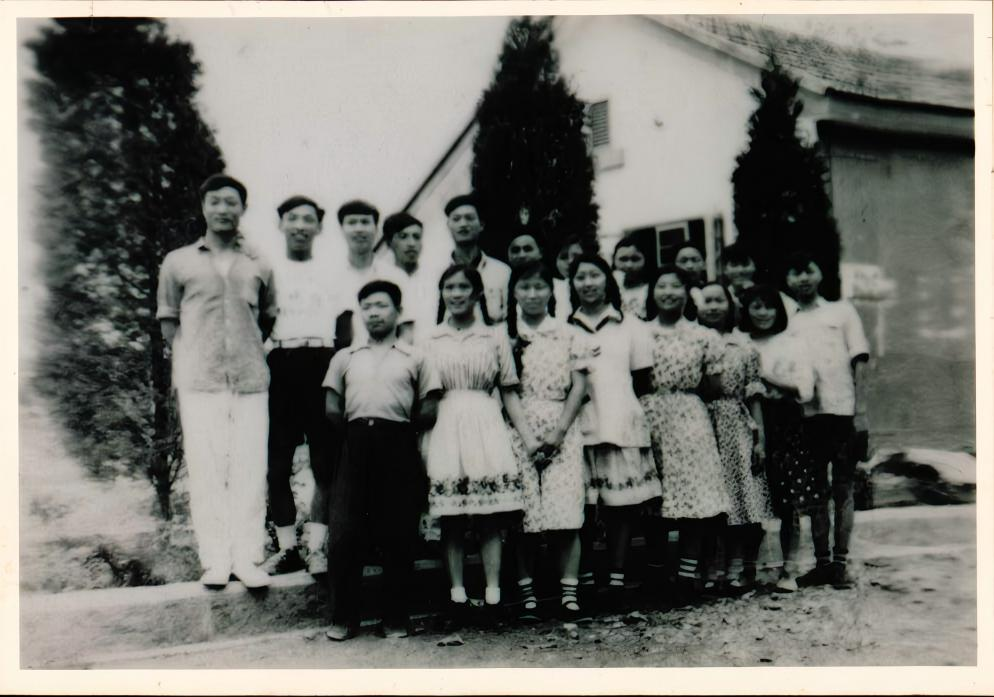 (档案馆馆藏1958年414共青团支部毕业合影 第三排右一为彭觉富)