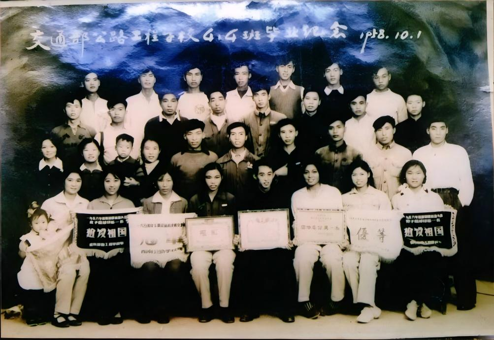 交大曾于1972年至1979年并入重庆建工学院,这张照片就是1972级桥专业学生合影。1974年已经成家立业的彭觉富回到故乡重庆,成为母校的一名老师,以全新的身份见证了交大又一历史时期的发展壮大。他不仅担任工程实训老师,也是政治辅导员。多年工作经验的积累充实了他的教学能力,让他深受学生的爱戴。道桥系75级桥1班血木尔铁等好几位藏族同学毕业后分配回西藏,成为西藏交通建设的中坚力量,他们多次给彭老师寄来高原的礼物,一起感念在沙坪坝学习生活的交大记忆。